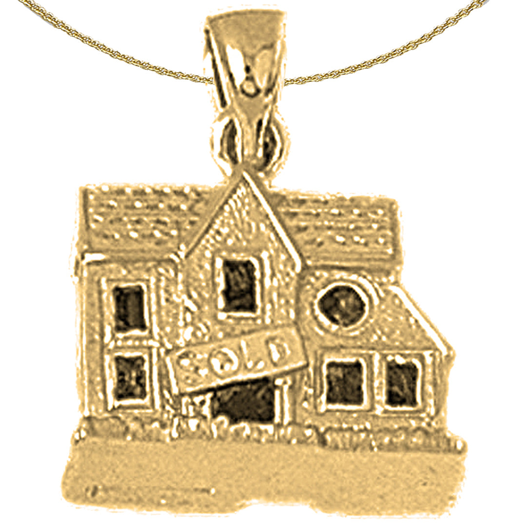 Yellow Gold-plated Silver 3D Cottage House Pendant