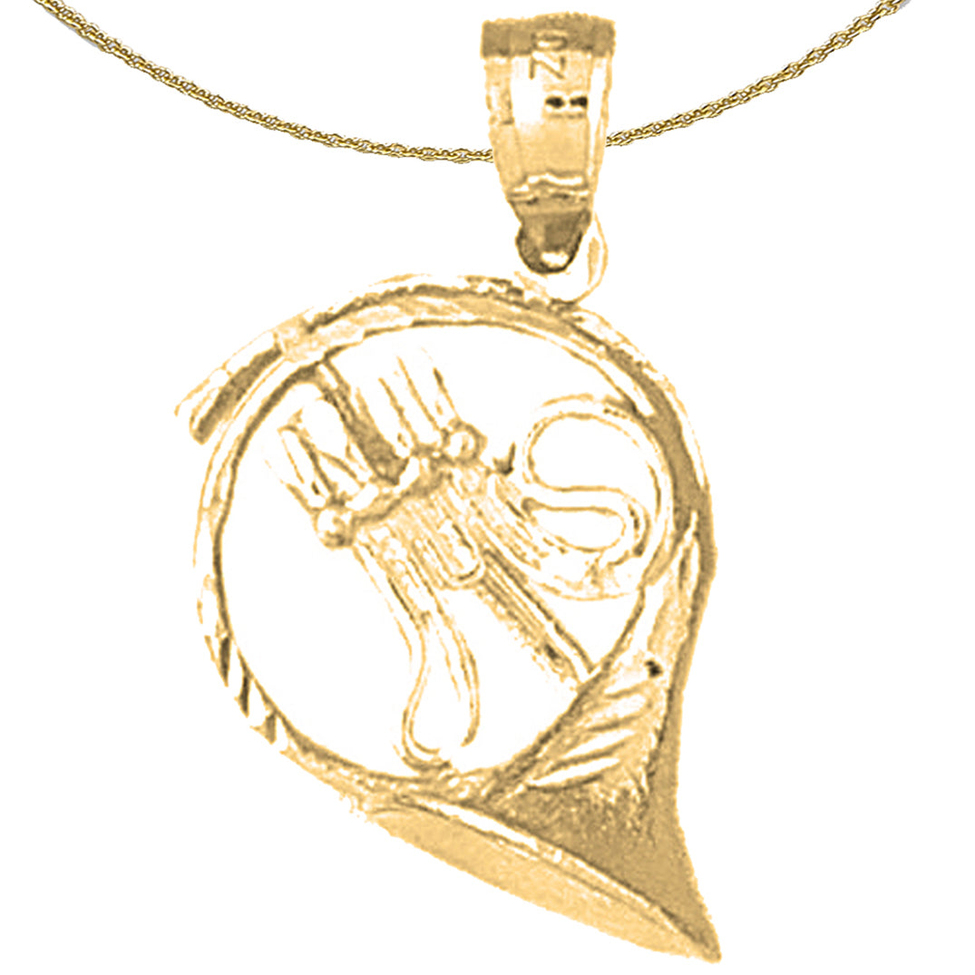 Sterling Silver 3D French Horn Pendant (Rhodium or Yellow Gold-plated)