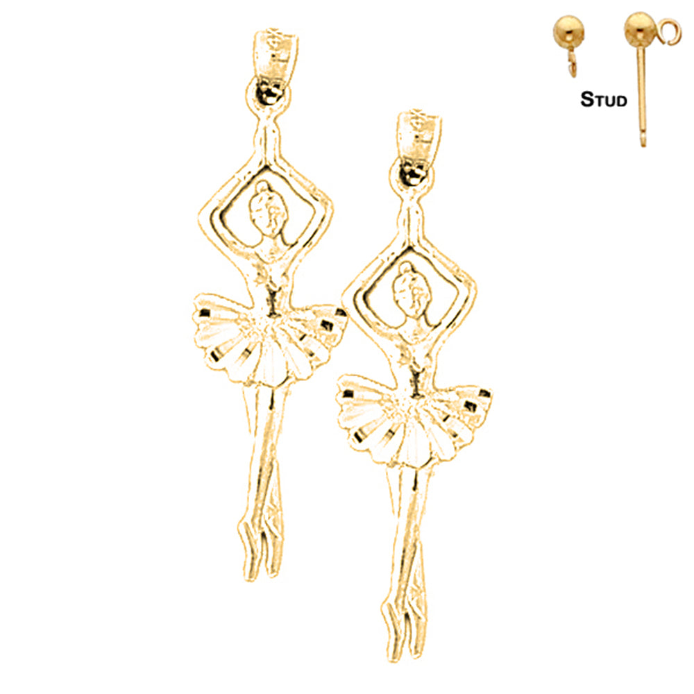 Sterling Silver 40mm Fifth Position Ballerina Earrings (White or Yellow Gold Plated)