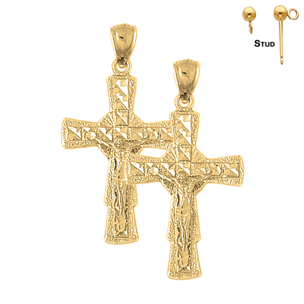 Sterling Silver 40mm Glory Crucifix Earrings (White or Yellow Gold Plated)