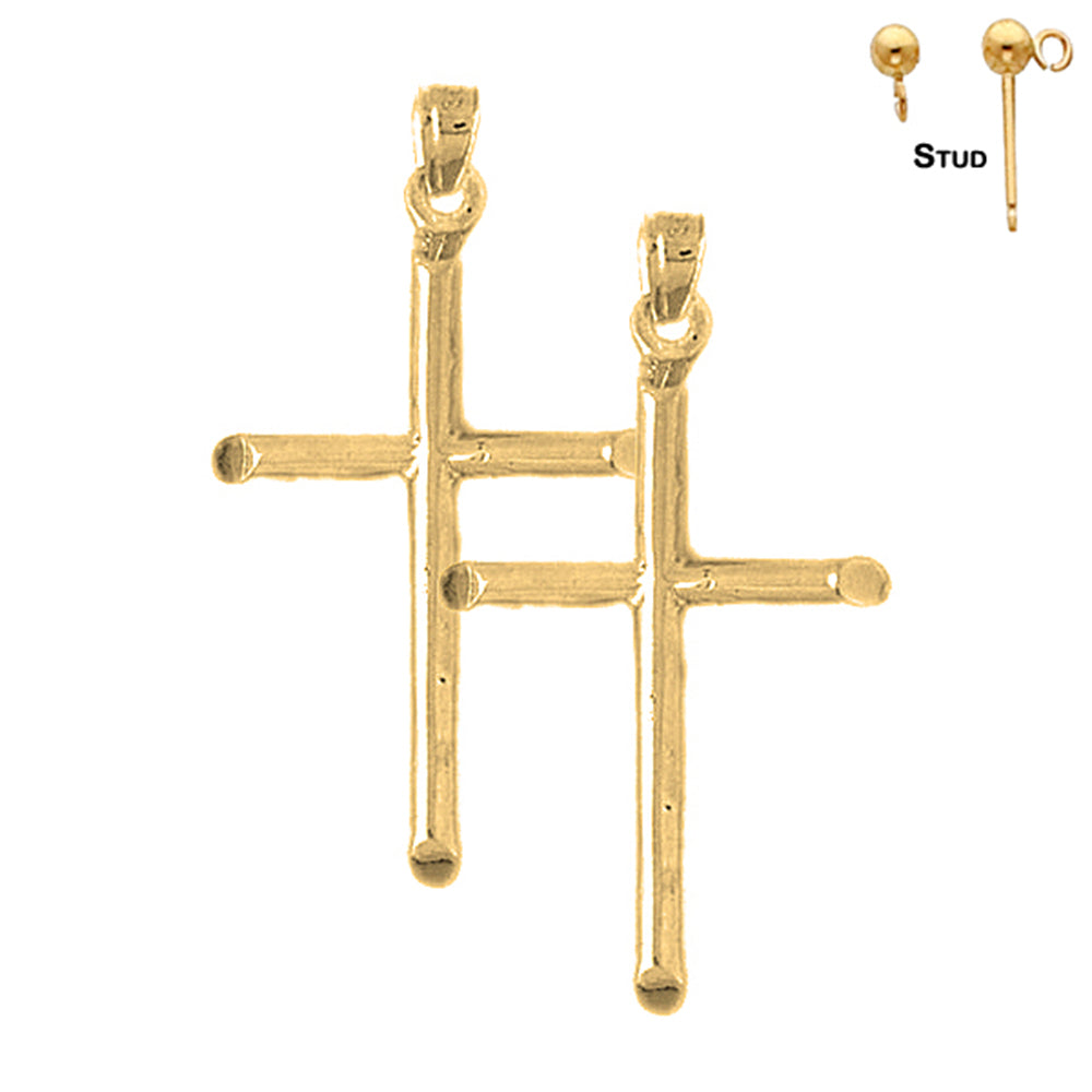 Sterling Silver 40mm Hollow Latin Cross Earrings (White or Yellow Gold Plated)