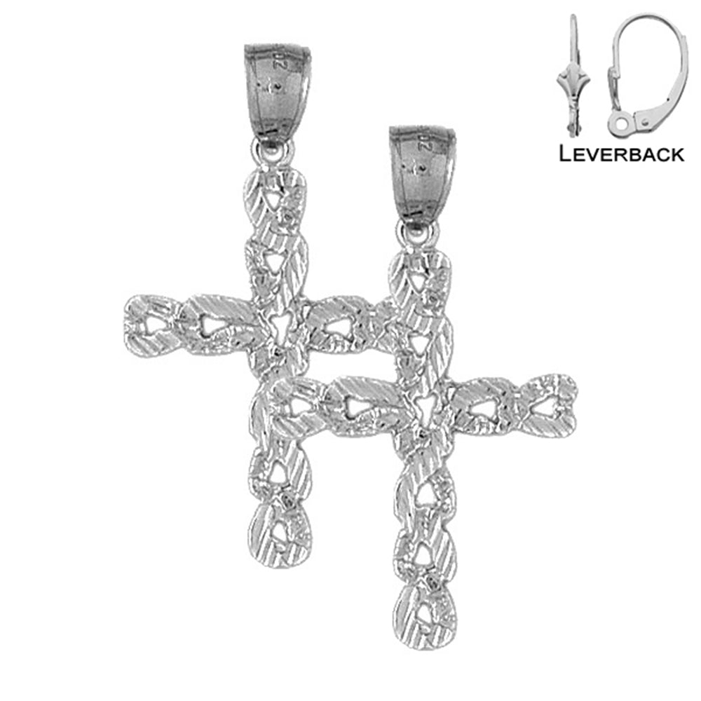Sterling Silver 40mm Latin Cross Earrings (White or Yellow Gold Plated)