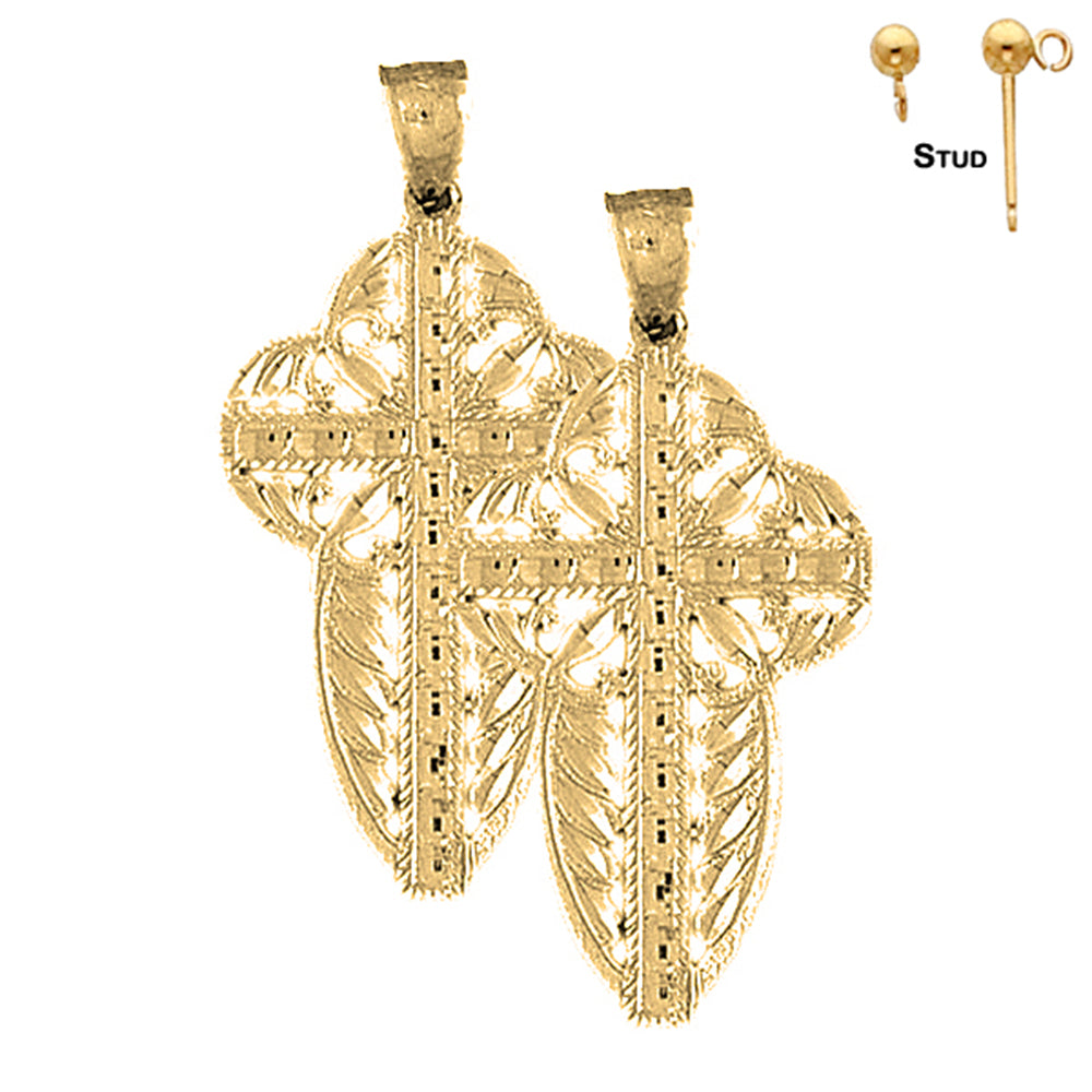 Sterling Silver 43mm Floral Cross Earrings (White or Yellow Gold Plated)