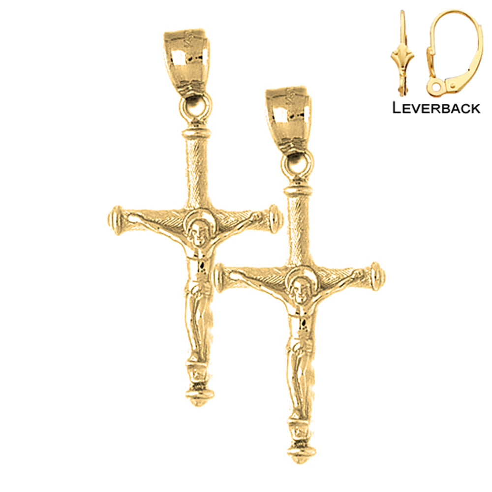 Sterling Silver 43mm Hollow Latin Crucifix Earrings (White or Yellow Gold Plated)