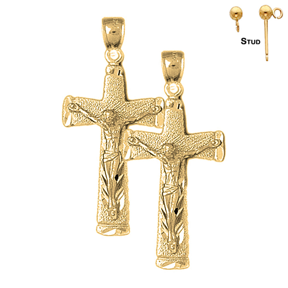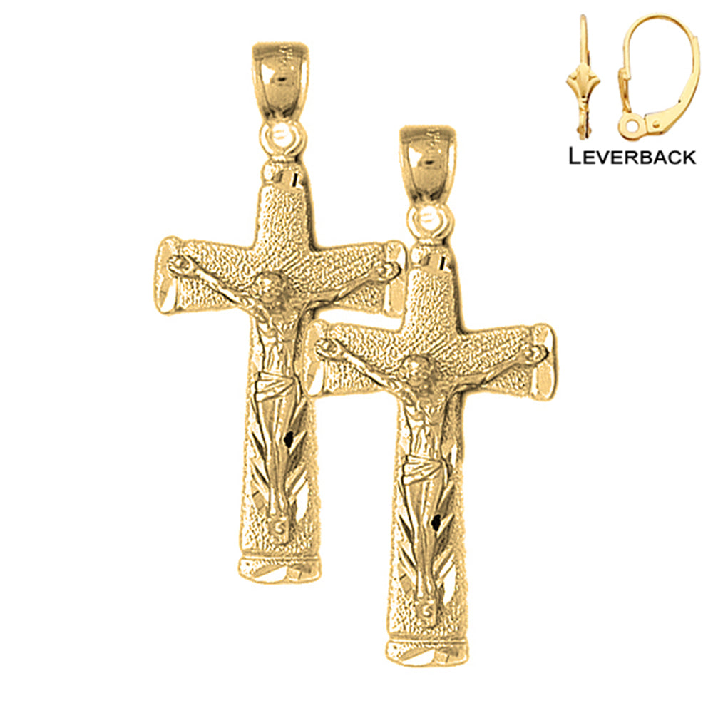 Sterling Silver 43mm Latin Crucifix Earrings (White or Yellow Gold Plated)