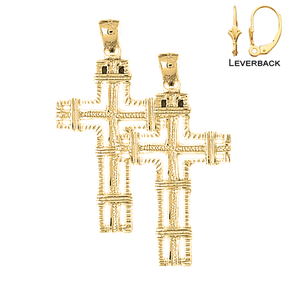 Sterling Silver 43mm Roped Cross Earrings (White or Yellow Gold Plated)