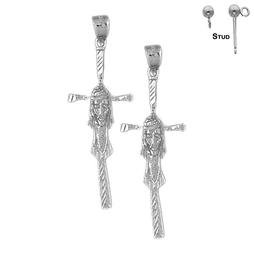 Sterling Silver 44mm Cross with Jesus Face Earrings (White or Yellow Gold Plated)