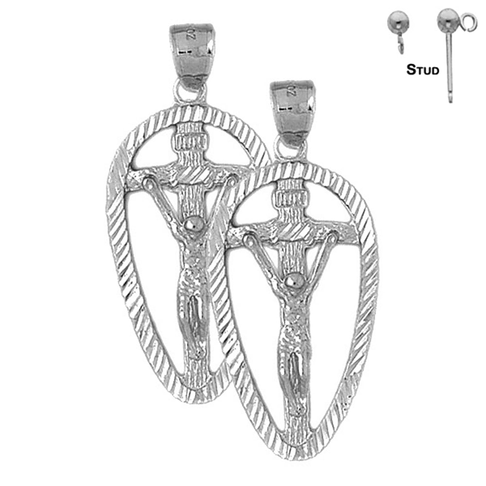 Sterling Silver 44mm INRI Crucifix Earrings (White or Yellow Gold Plated)
