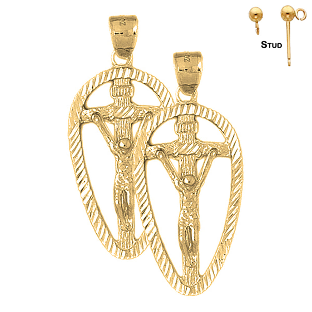 Yellow Gold-plated Silver 44mm INRI Crucifix Earrings