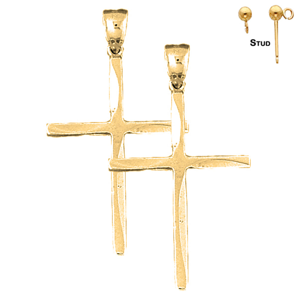 Sterling Silver 44mm Latin Cross Earrings (White or Yellow Gold Plated)