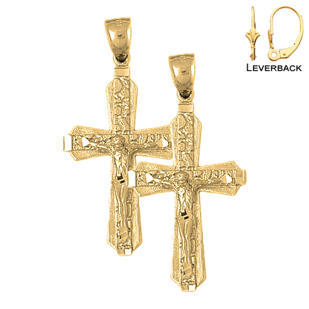Sterling Silver 47mm Nugget Crucifix Earrings (White or Yellow Gold Plated)