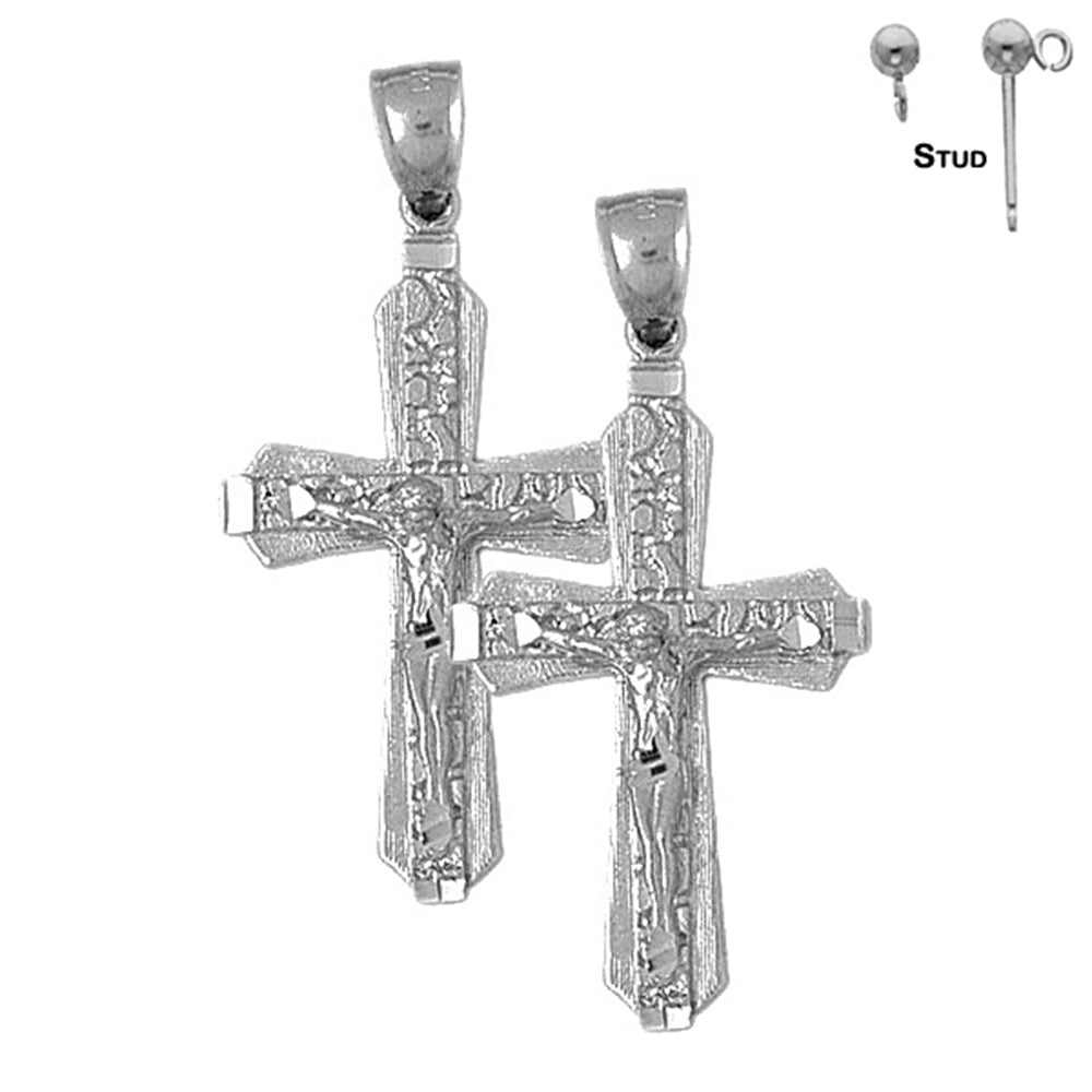 This is a stunning sterling silver 47mm nugget crucifix earrings. This sterling silver earrings measures 47 mm in length by 24 mm width. JewelsObsession creates all our silver jewelry in our state of the art manufacturing facility.