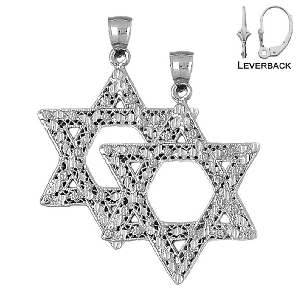 Sterling Silver 50mm Star of David Earrings (White or Yellow Gold Plated)