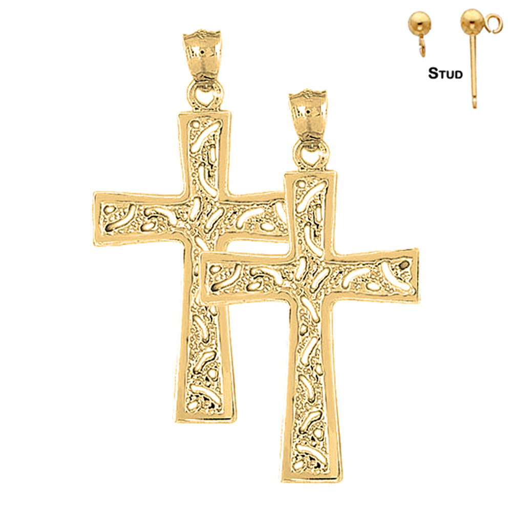 Sterling Silver 53mm Nugget Cross Earrings (White or Yellow Gold Plated)