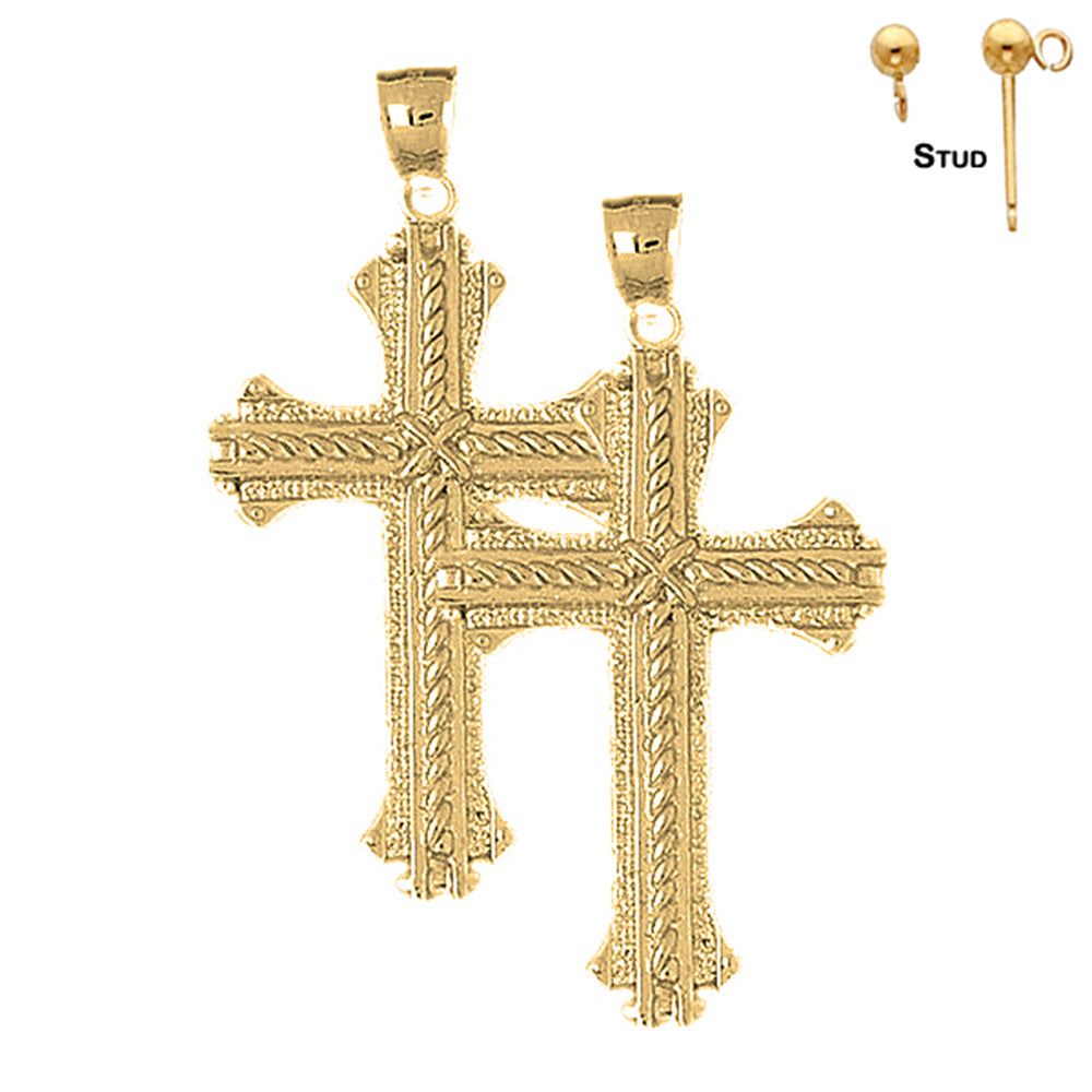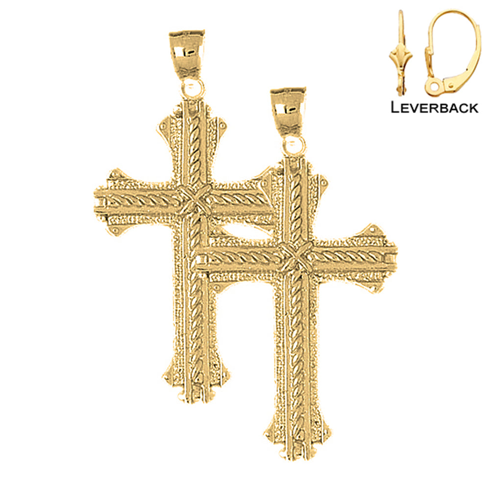 Sterling Silver 53mm Roped Cross Earrings (White or Yellow Gold Plated)