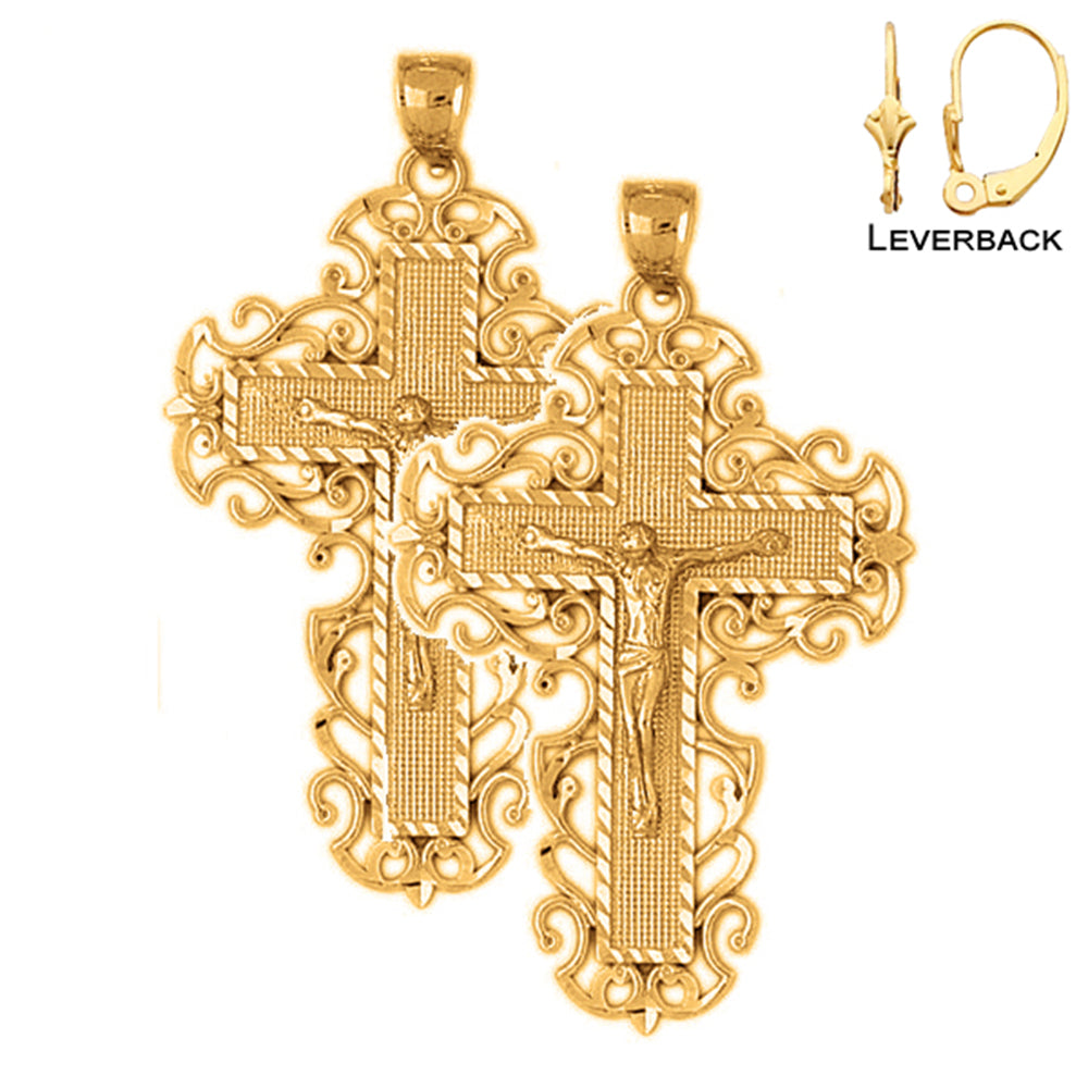 Sterling Silver 53mm Vine Crucifix Earrings (White or Yellow Gold Plated)