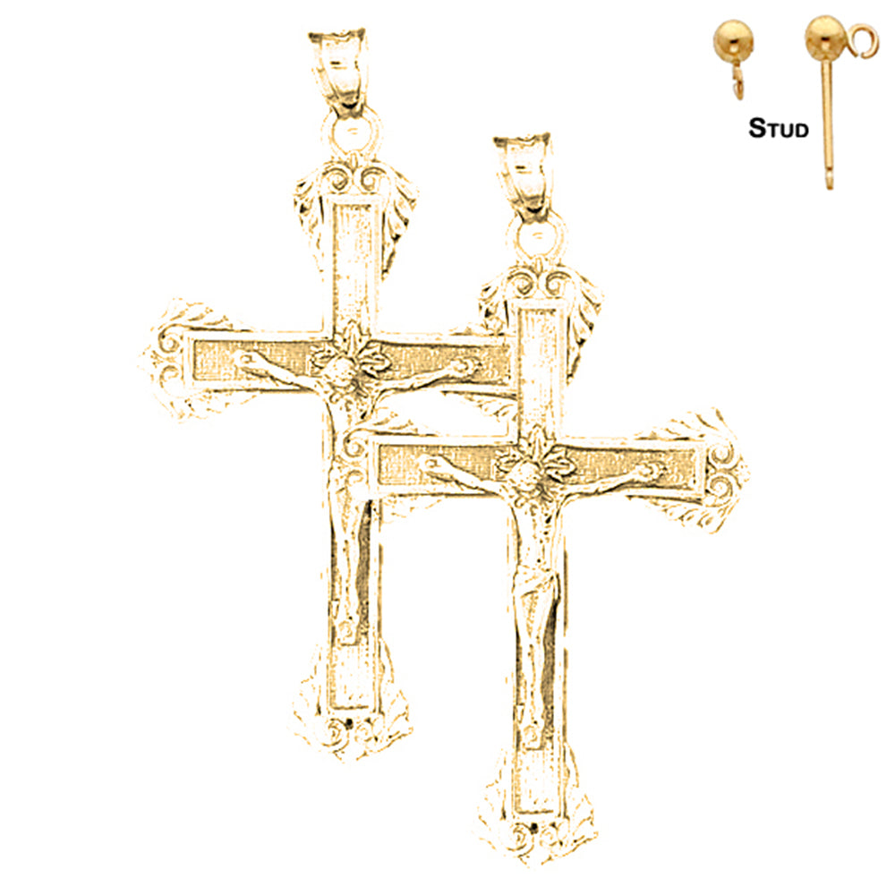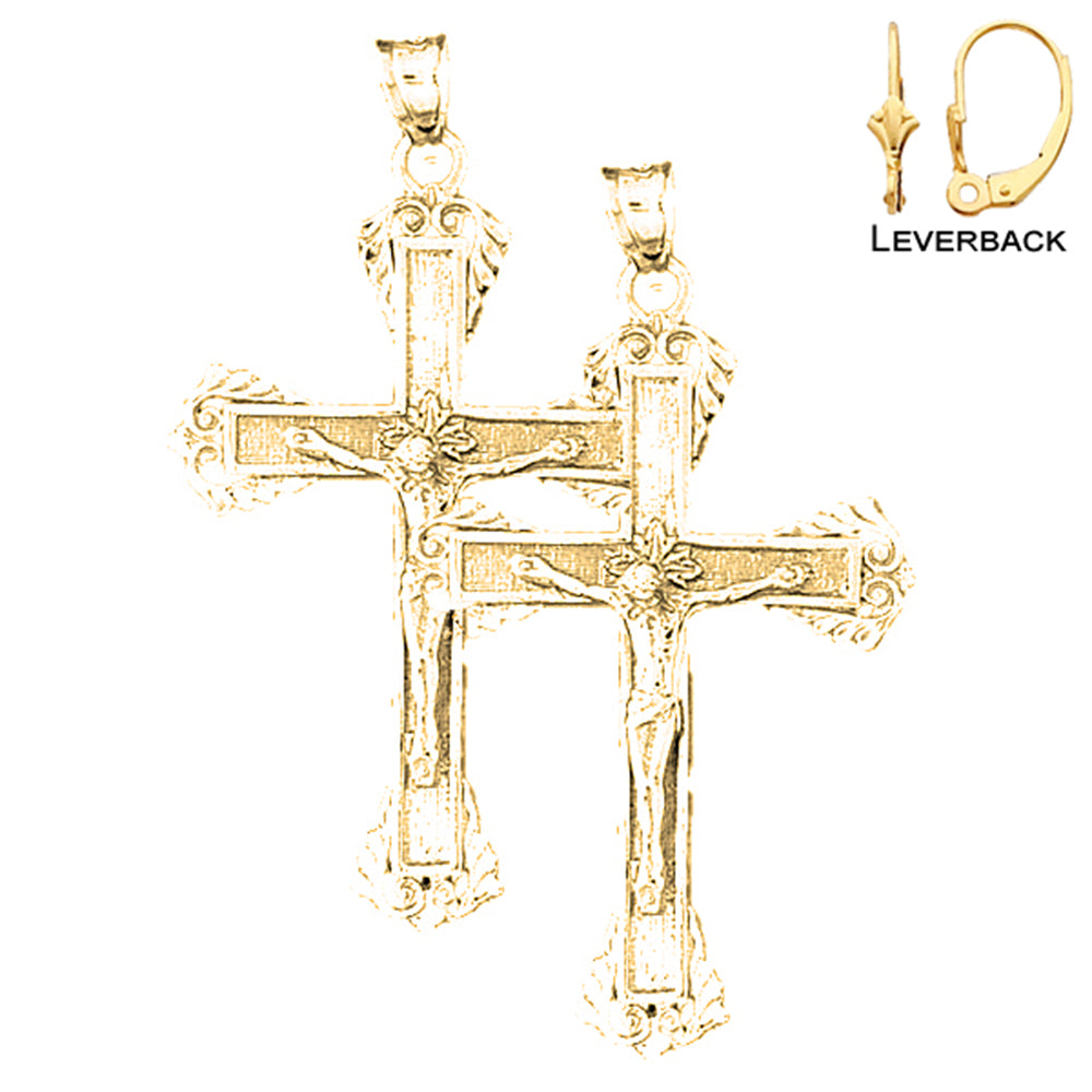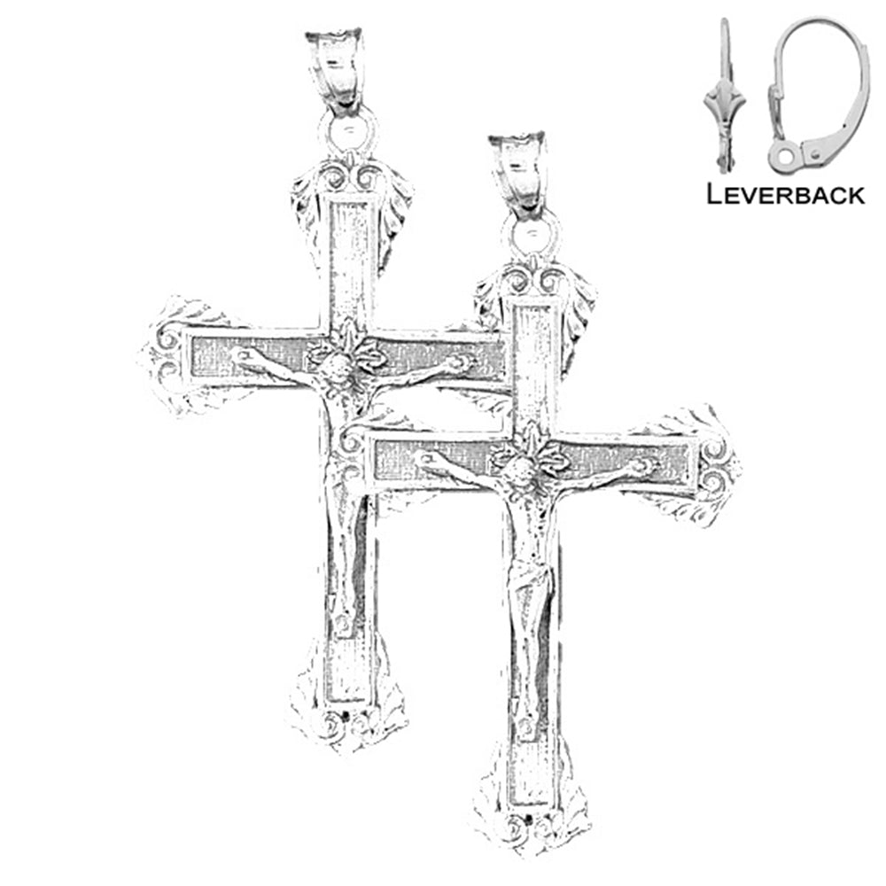 Sterling Silver 56mm Latin Crucifix Earrings (White or Yellow Gold Plated)