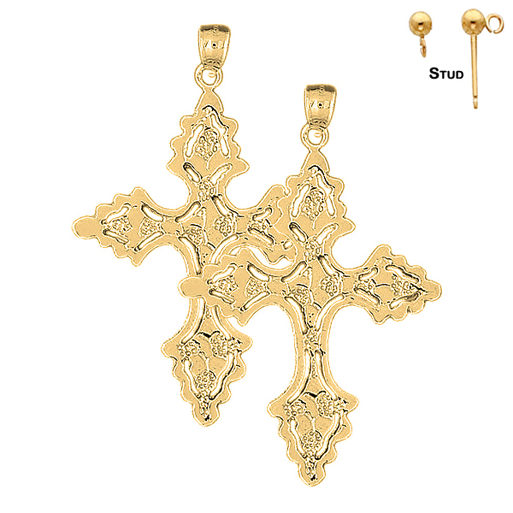 Sterling Silver 67mm Nugget Cross Earrings (White or Yellow Gold Plated)