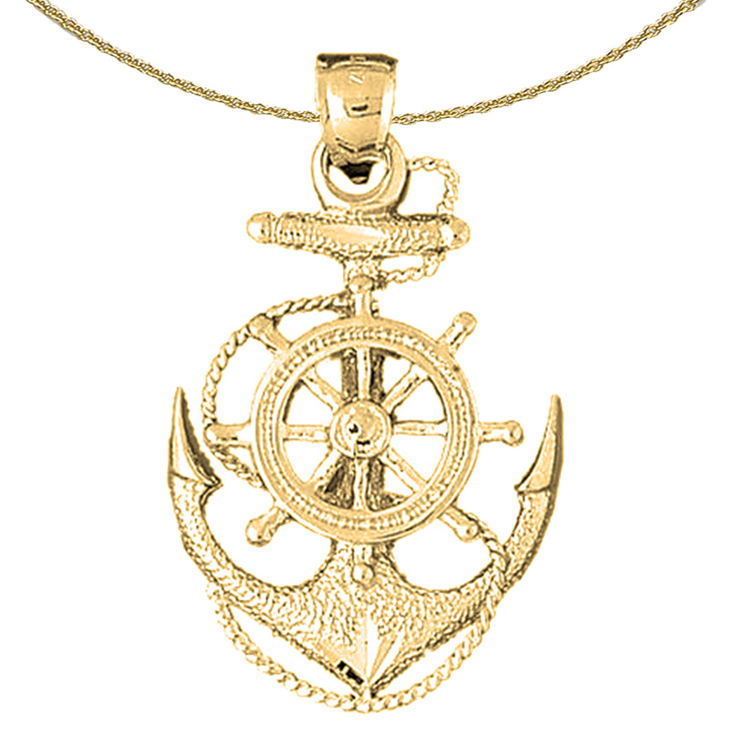 Sterling Silver Anchor With Ships Wheel Pendant (Rhodium or Yellow Gold-plated)