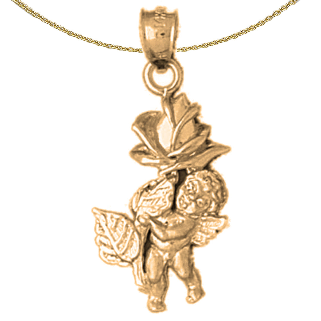 Yellow Gold-plated Silver Angel With Rose Pendant