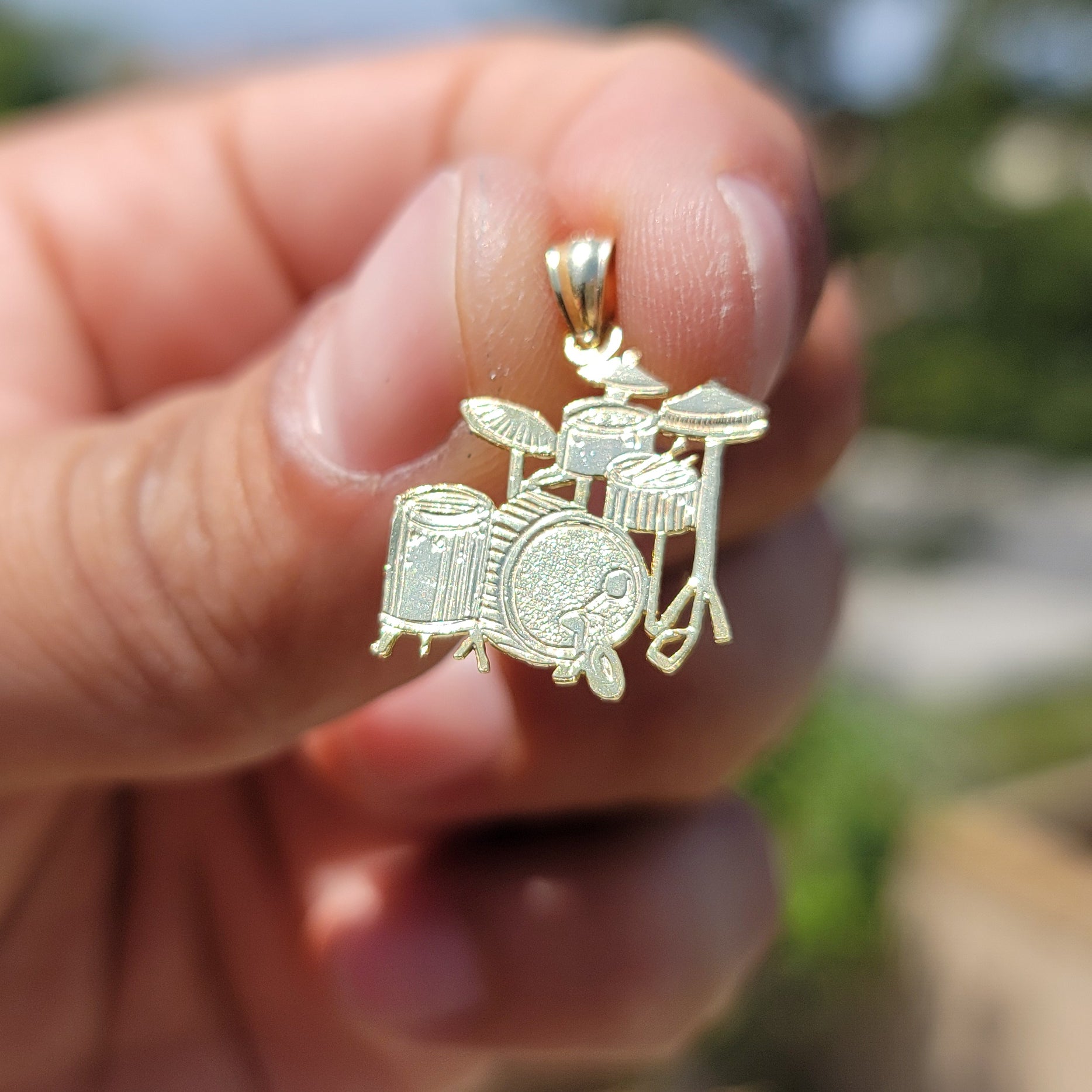 Sterling Silver Drums Pendant (Rhodium or Yellow Gold-plated)