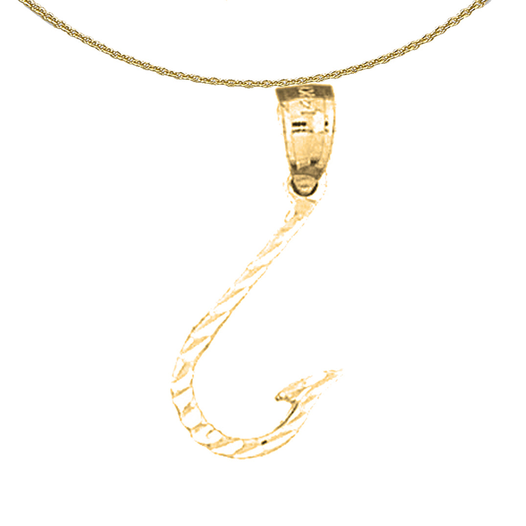 Sterling Silver Fish Hook Pendant (Rhodium or Yellow Gold-plated)