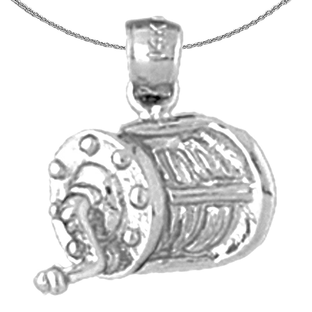 Sterling Silver Fishing Reel Pendant (Rhodium or Yellow Gold-plated)