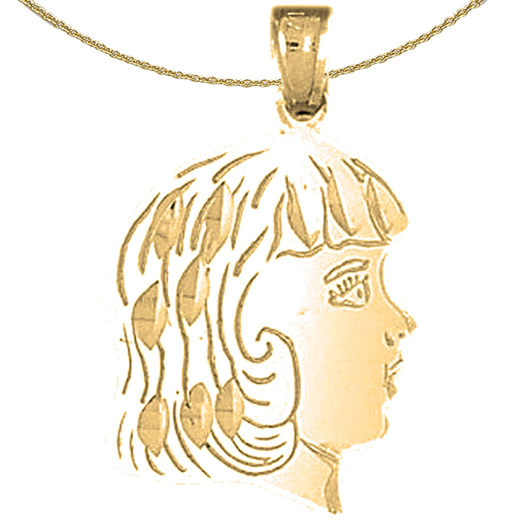 Sterling Silver Girl Head Pendant (Rhodium or Yellow Gold-plated)