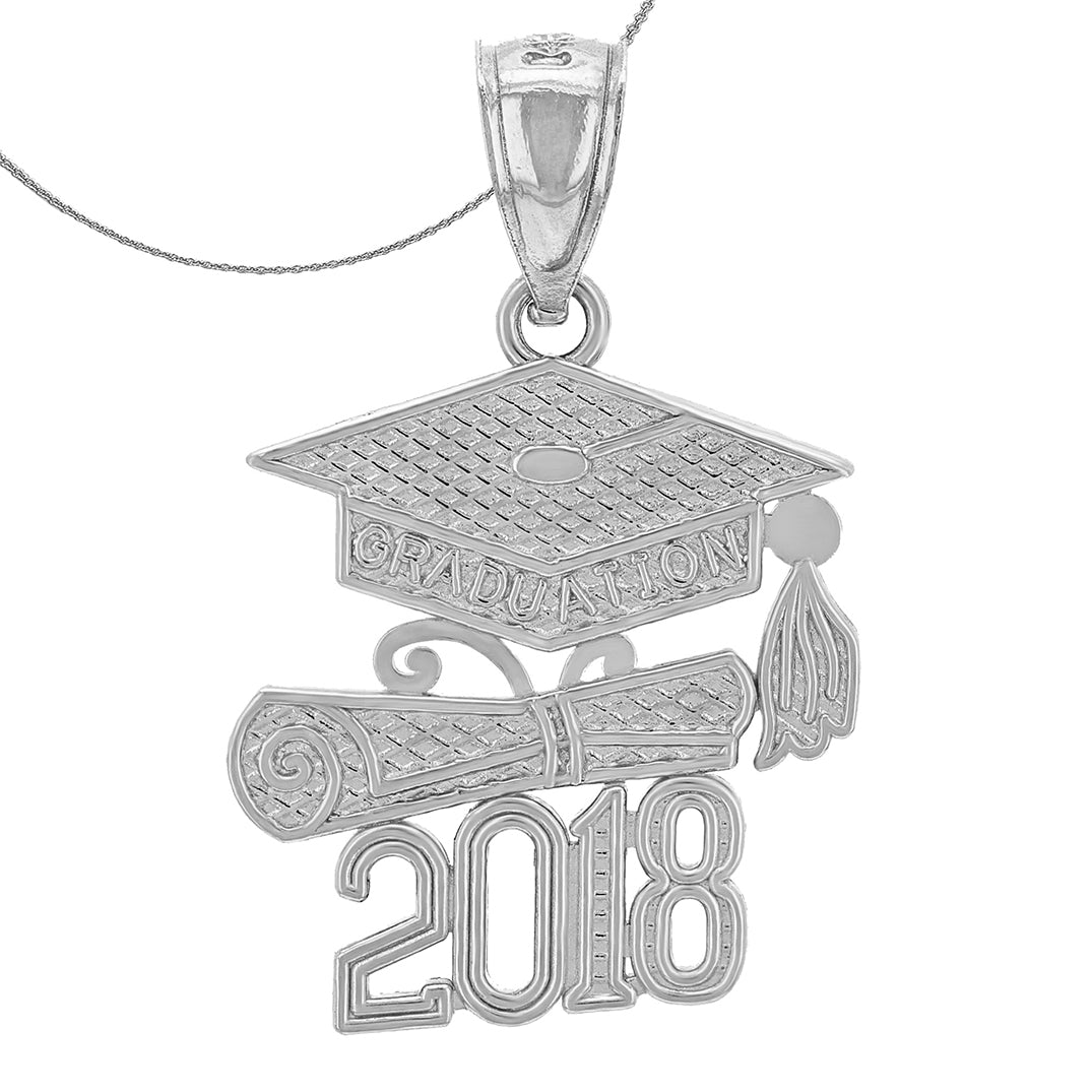 Sterling Silver Graduation Cap, Diploma (With Current Year) Pendant (Rhodium or Yellow Gold-plated)