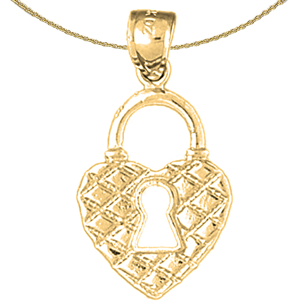 Sterling Silver Heart Padlock, Lock Pendant (Rhodium or Yellow Gold-plated)