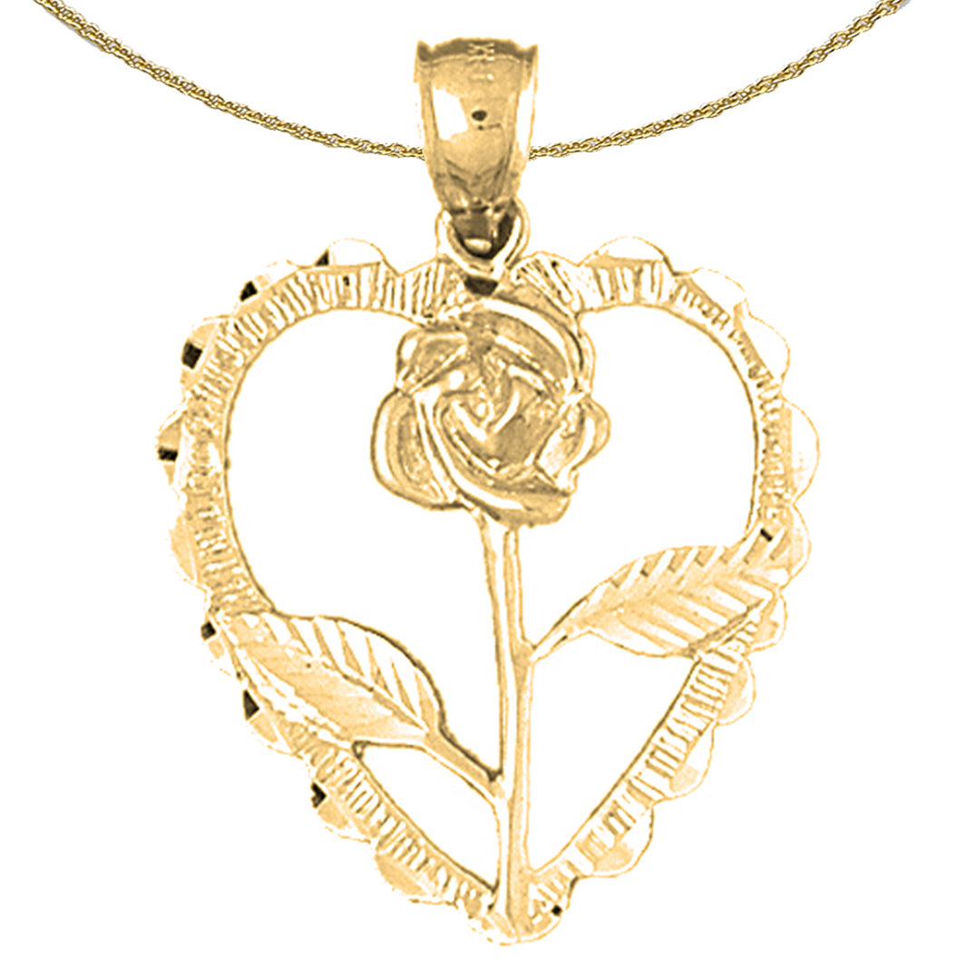 Sterling Silver Heart With Rose Pendant (Rhodium or Yellow Gold-plated)