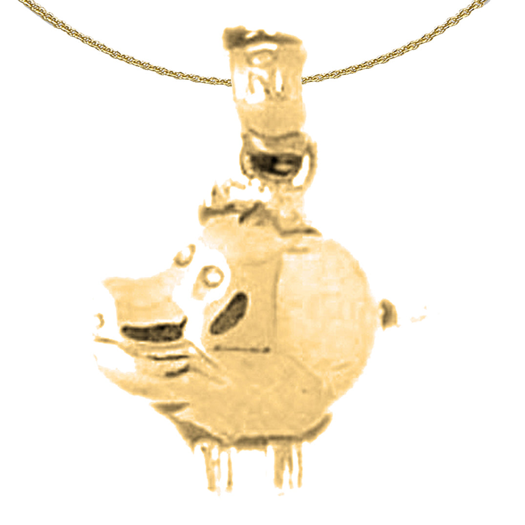Sterling Silver Hippopotamus Pendant (Rhodium or Yellow Gold-plated)