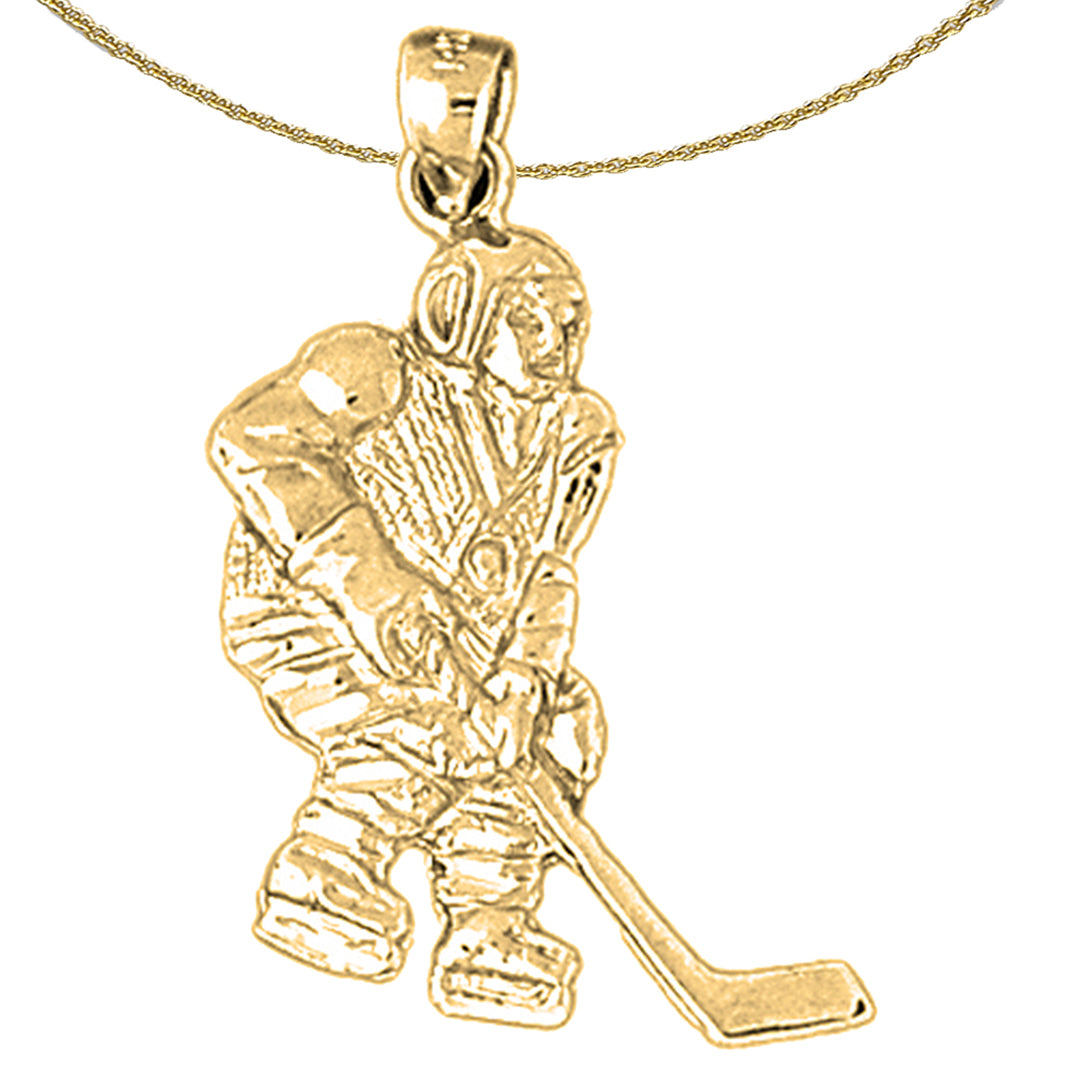 Sterling Silver Hockey Player Pendant (Rhodium or Yellow Gold-plated)