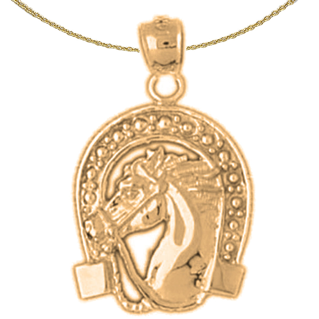 Sterling Silver Horse Shoe And Horse Pendant (Rhodium or Yellow Gold-plated)