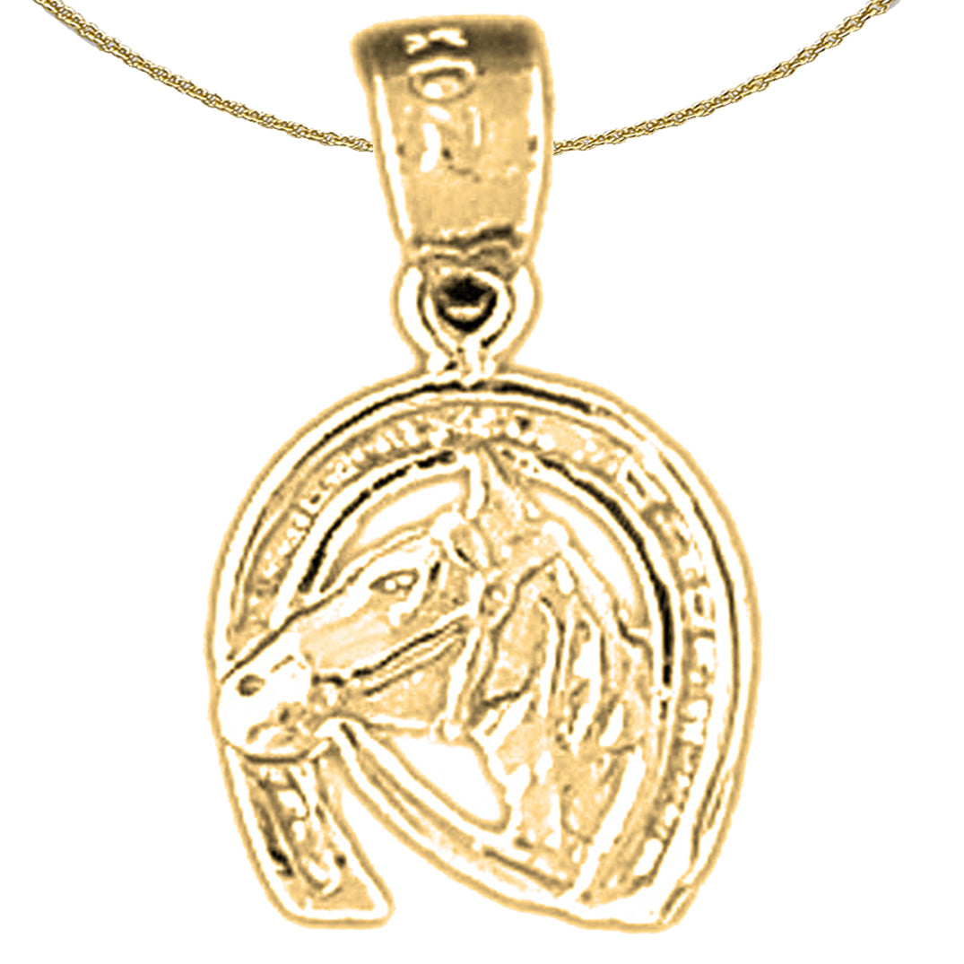 Sterling Silver Horseshoe With Horse Pendant (Rhodium or Yellow Gold-plated)