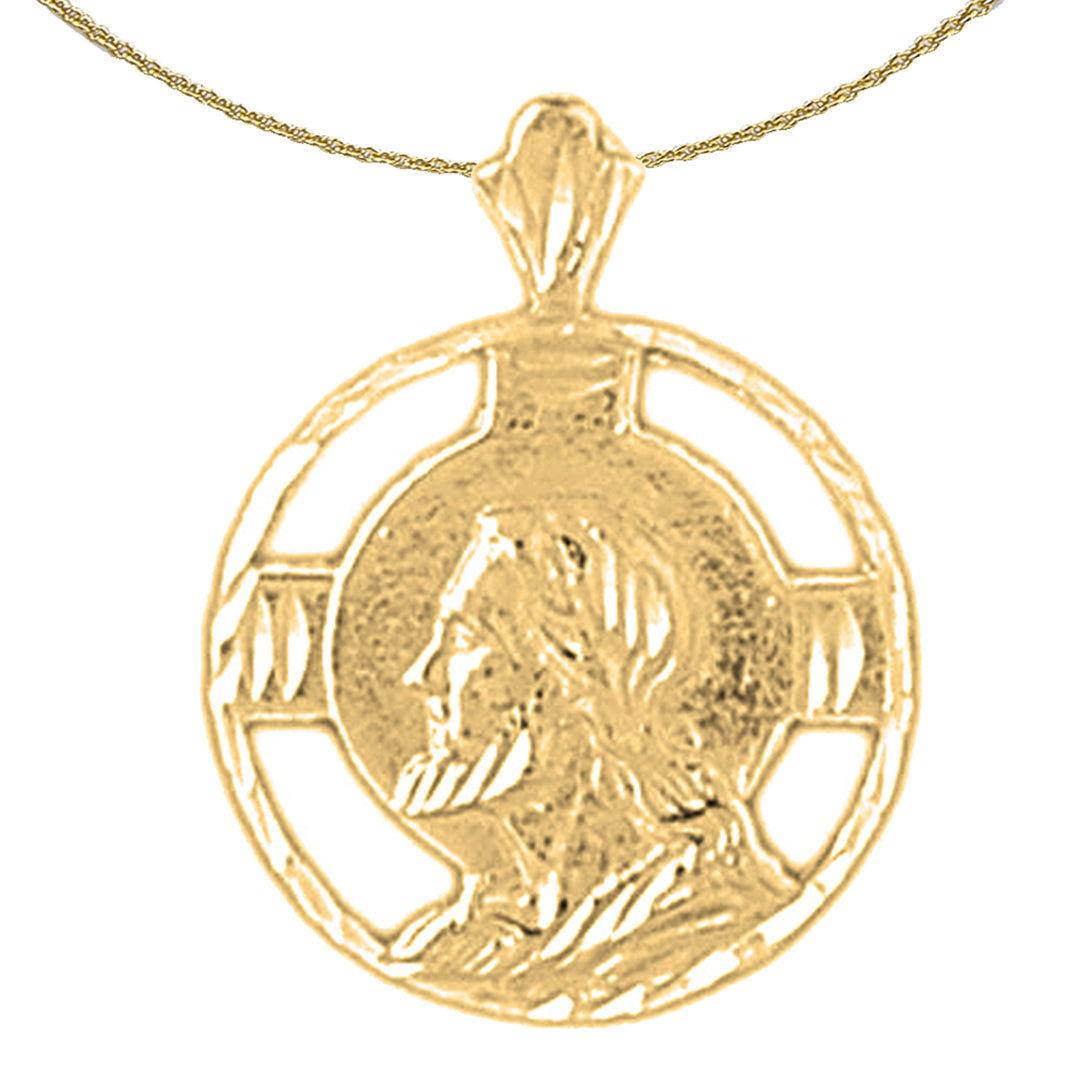 Sterling Silver Jesus Medal Pendant (Rhodium or Yellow Gold-plated)