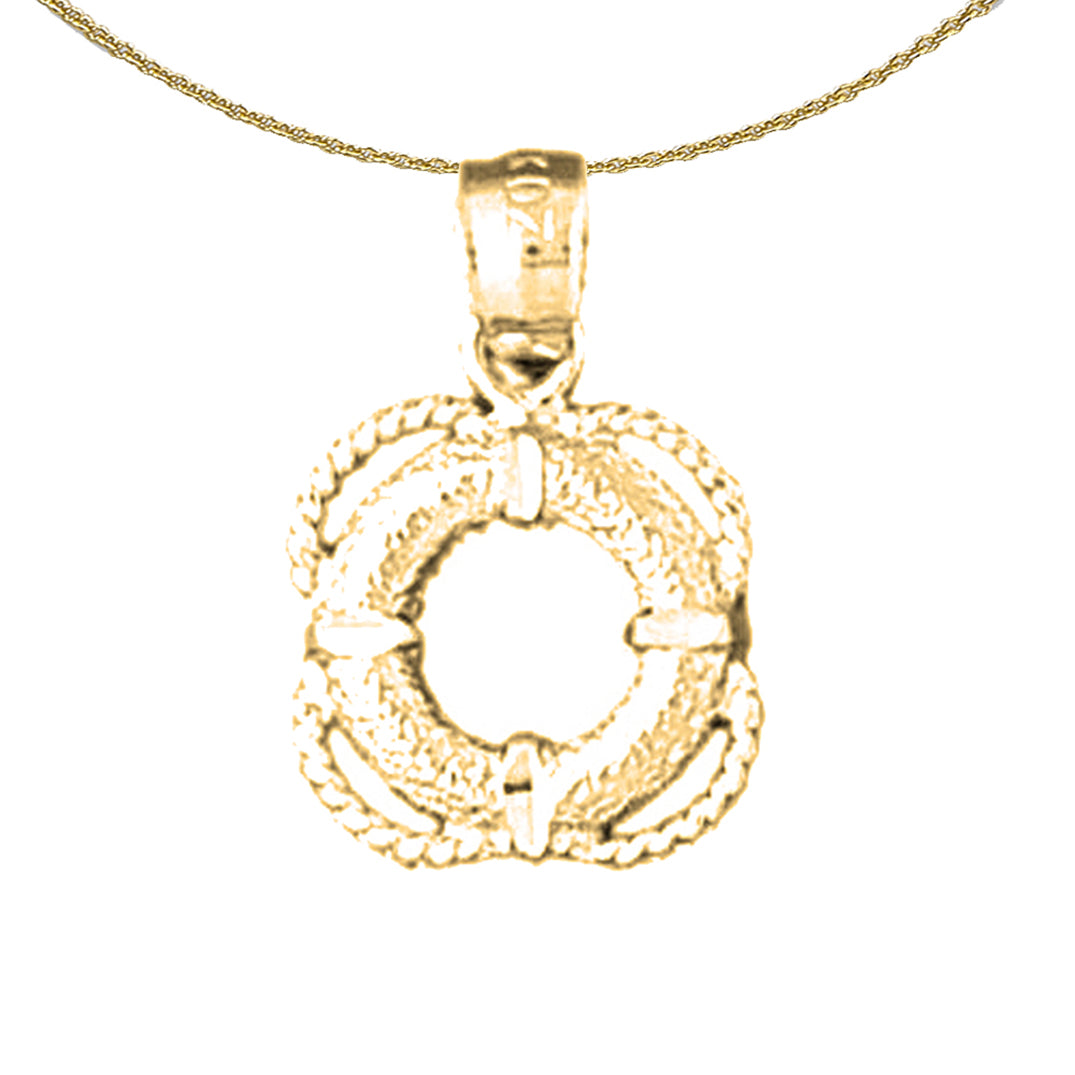 Sterling Silver Life Saver Pendant (Rhodium or Yellow Gold-plated)