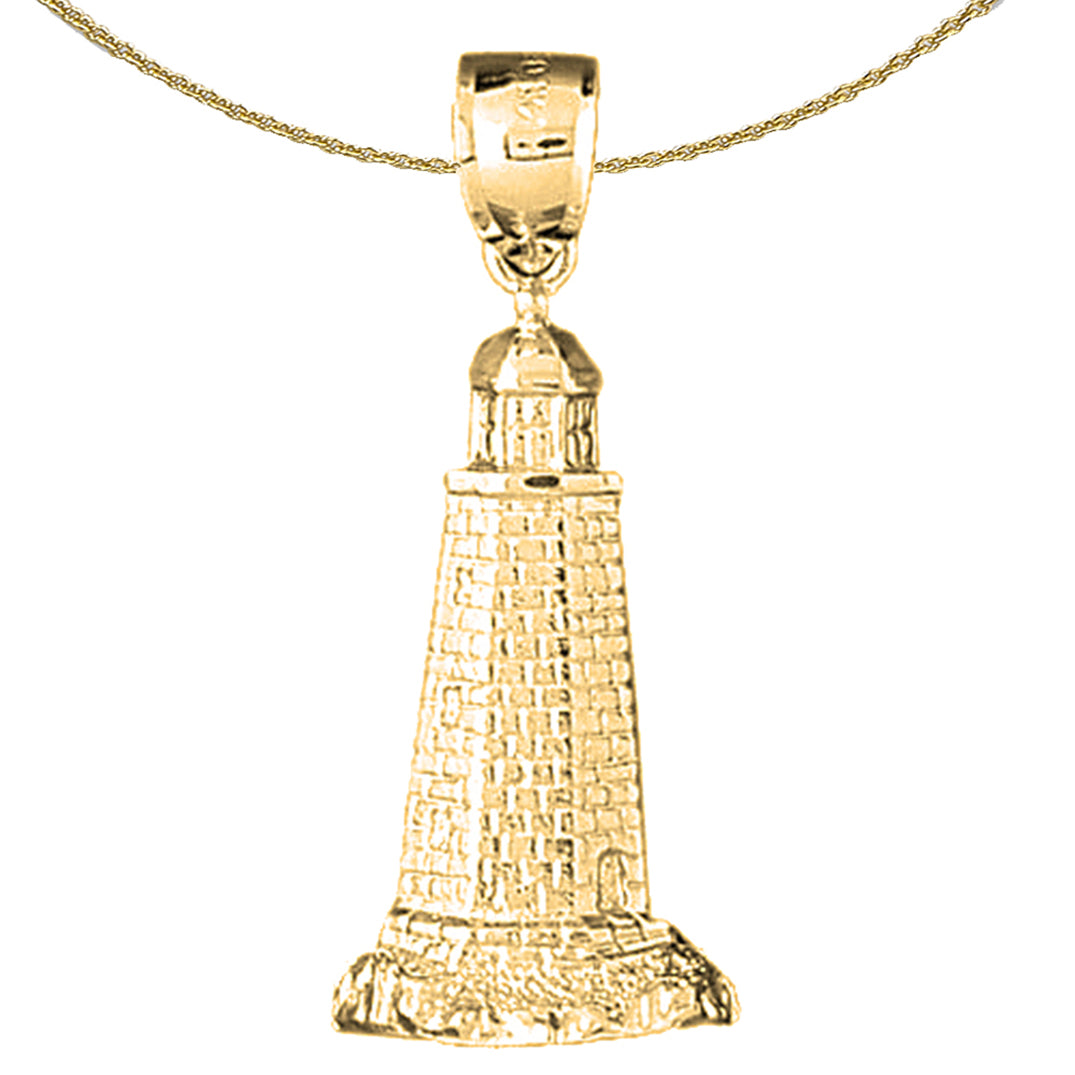Sterling Silver Lighthouse Pendant (Rhodium or Yellow Gold-plated)