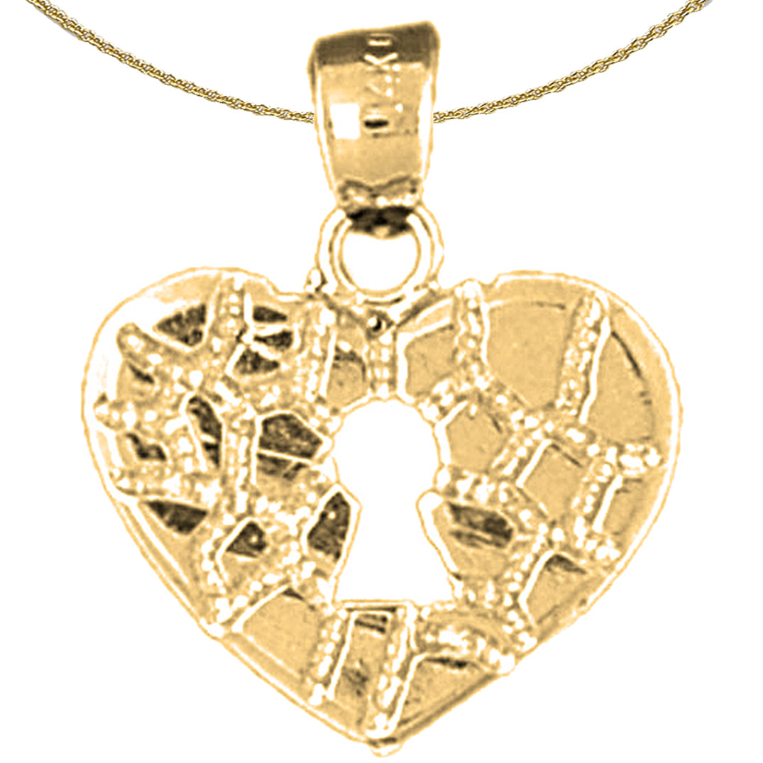 Sterling Silver Nugget Heart Padlock, Lock Pendant (Rhodium or Yellow Gold-plated)
