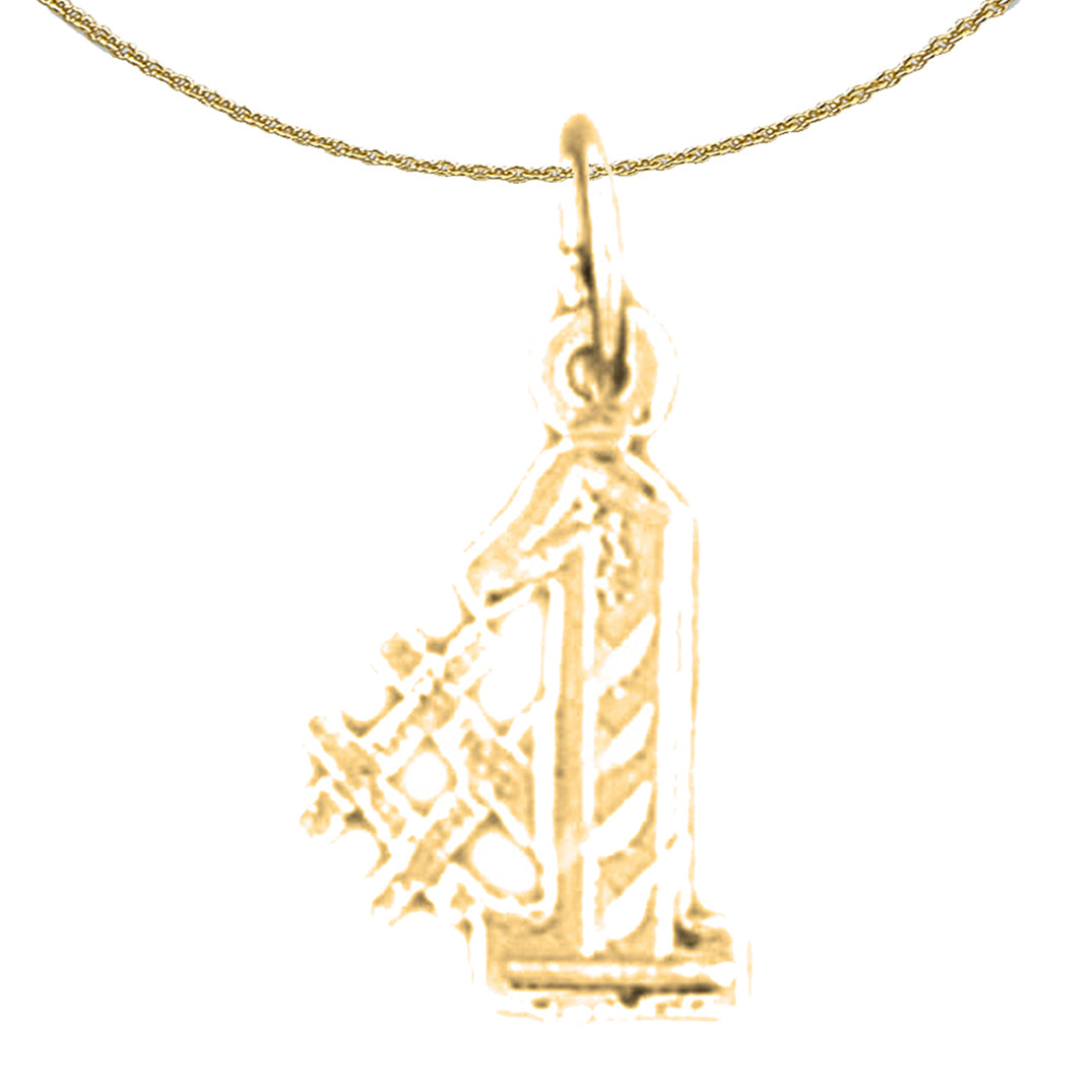 Sterling Silver #1, Number One Pendant (Rhodium or Yellow Gold-plated)