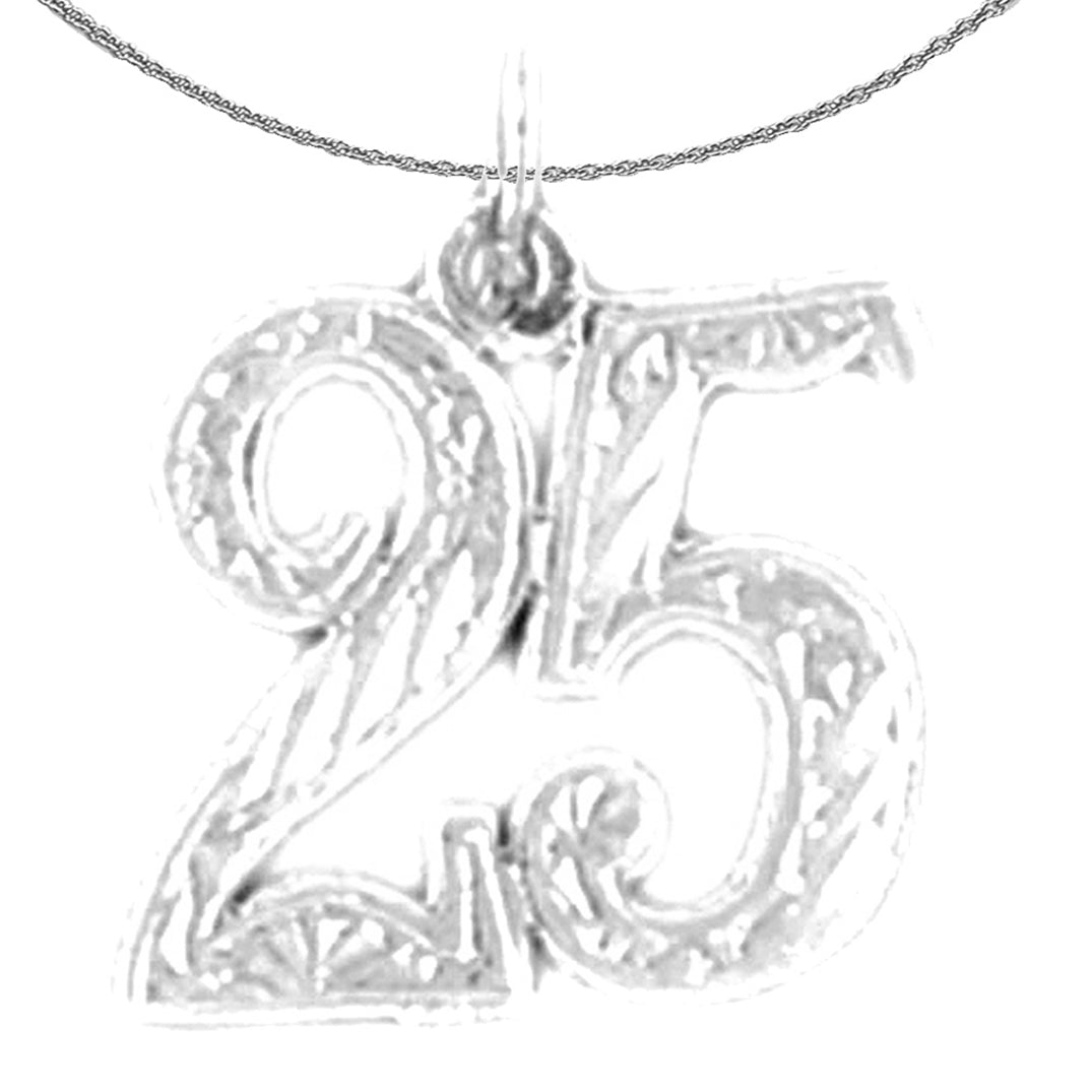 Sterling Silver Number Twenty Five, #25 Pendant (Rhodium or Yellow Gold-plated)