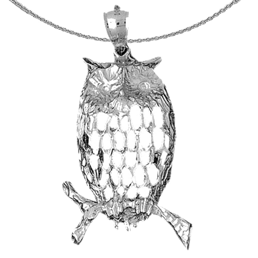 Sterling Silver Owl Pendant (Rhodium or Yellow Gold-plated)