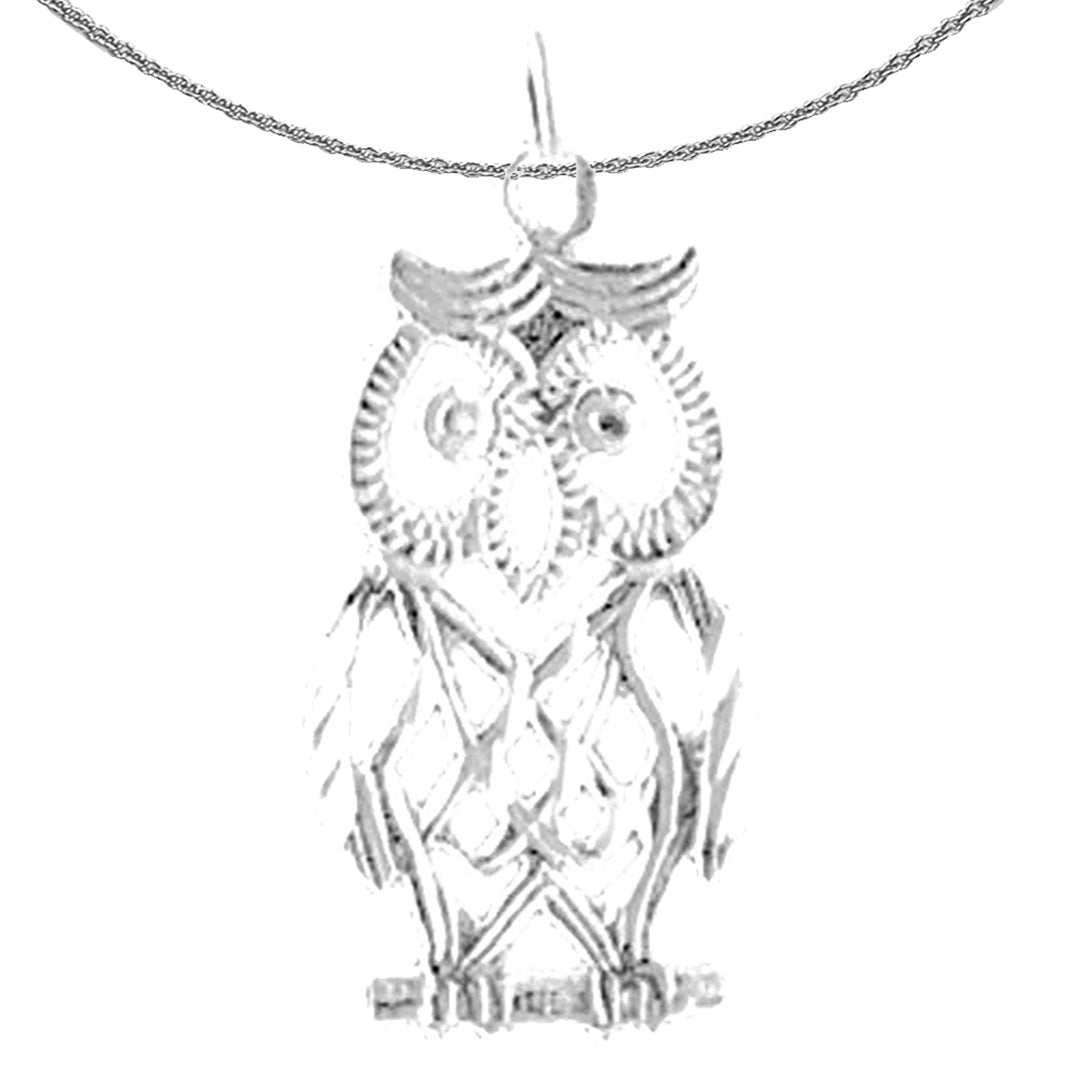 Sterling Silver Owl Pendant (Rhodium or Yellow Gold-plated)