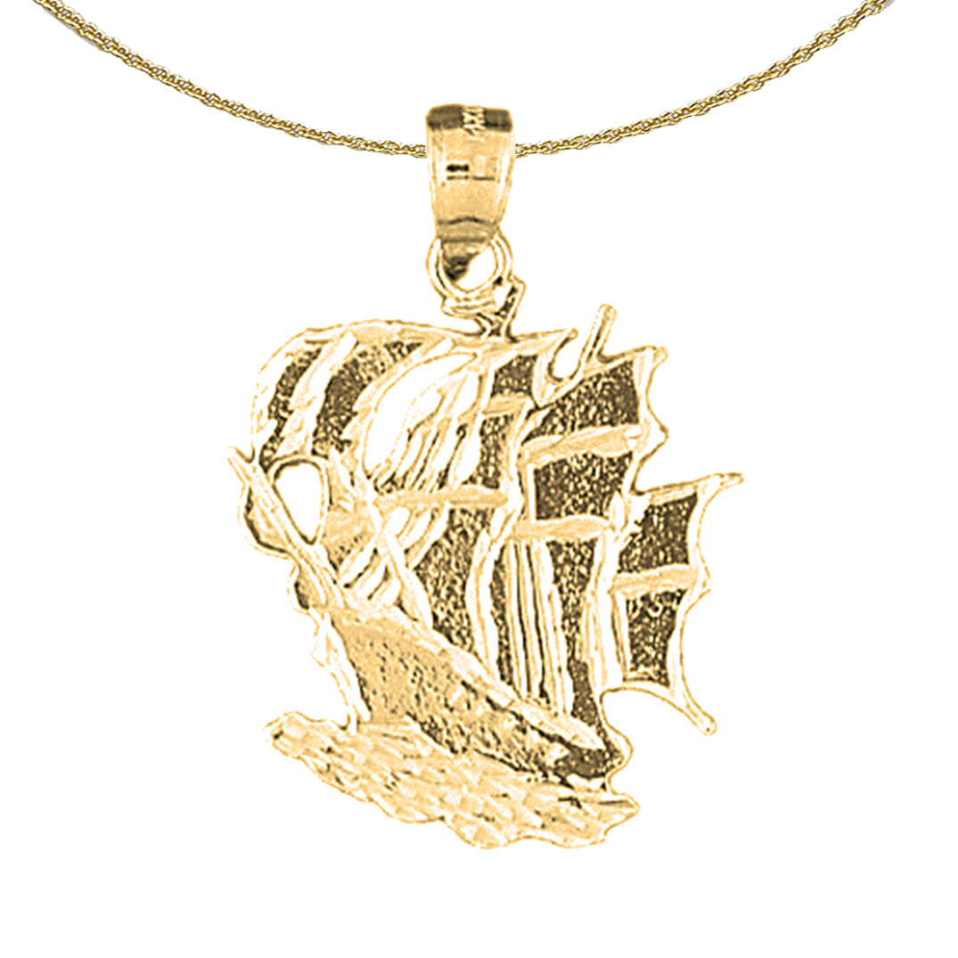 Sterling Silver Pirate Ship Pendant (Rhodium or Yellow Gold-plated)