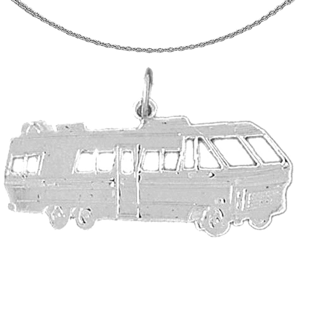 Sterling Silver Rv Recreational Vehicle Pendant (Rhodium or Yellow Gold-plated)