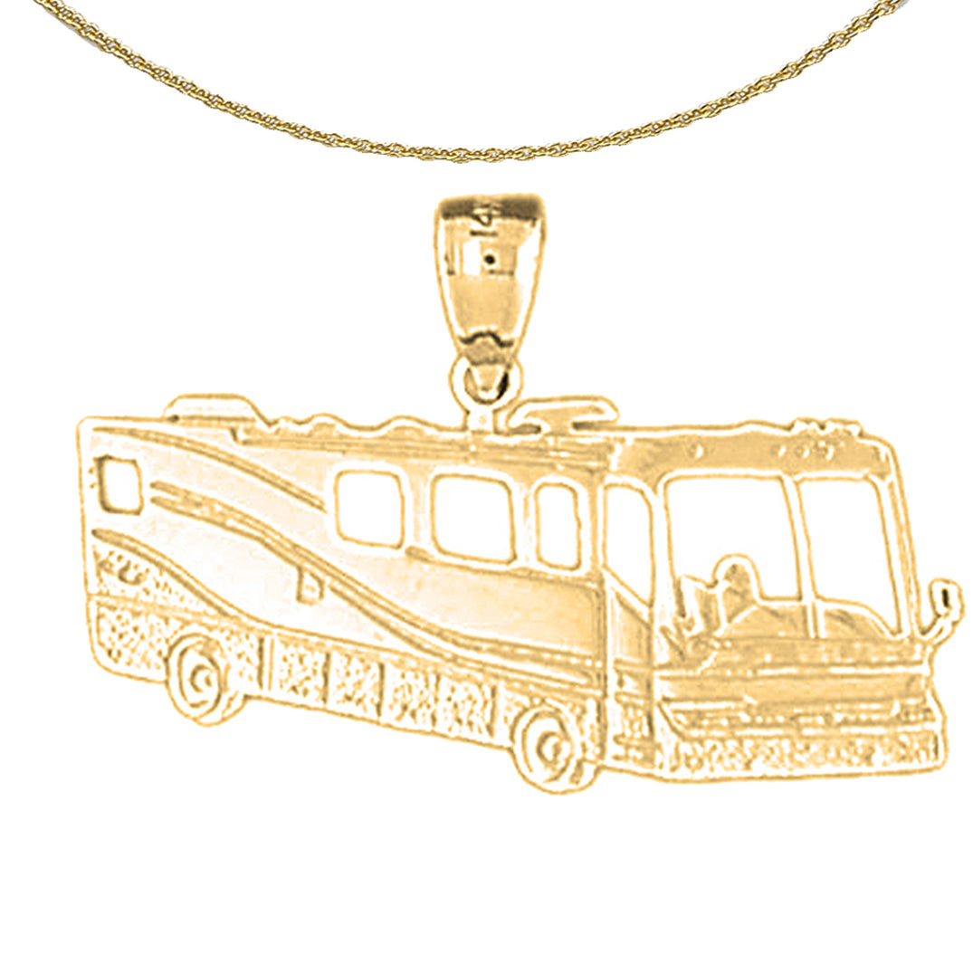Sterling Silver Rv Recreational Vehicle Pendant (Rhodium or Yellow Gold-plated)
