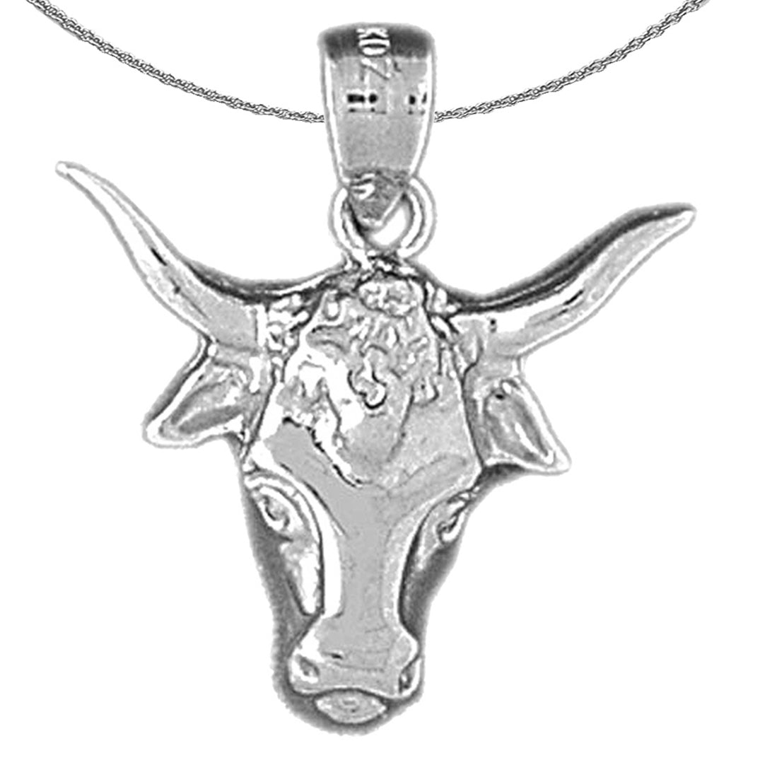 Sterling Silver Steer Head Pendant (Rhodium or Yellow Gold-plated)