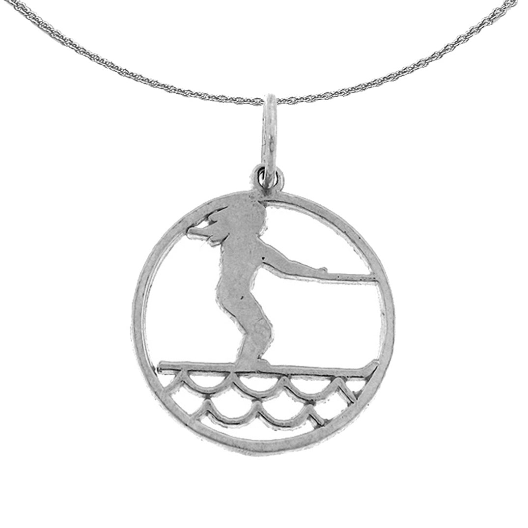 Sterling Silver Surfer Pendant (Rhodium or Yellow Gold-plated)