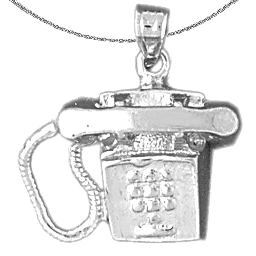 Sterling Silver Telephone Pendant (Rhodium or Yellow Gold-plated)