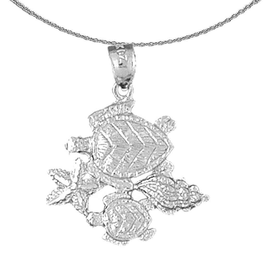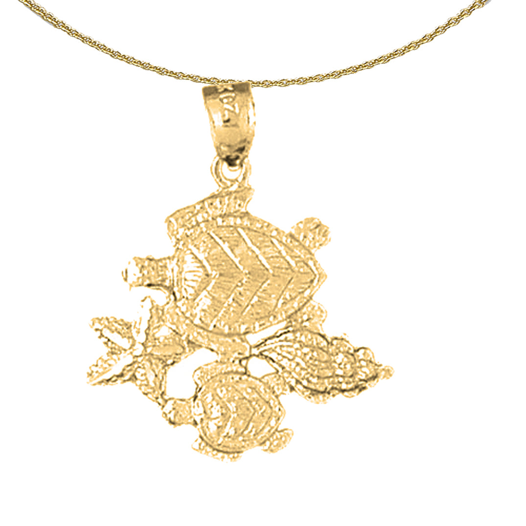 Sterling Silver Turtle, Starfish, And Shell Pendant (Rhodium or Yellow Gold-plated)